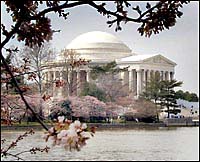 And nothing means "Spring in Washington" more than the breathtaking and brief display of DC's world-renowned CHERRY BLOSSOMS, on some 1,628 Yoshino, Kwanzan, and Akenbono cherry trees that ring the Tidal Basin, by the JEFFERSON and FDR MEMORIALS. The brief, fleeting sight of the tidal basin rimmed with the snowy