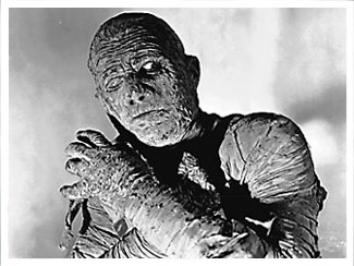Oh, sure, the mummy has long been accorded a place in the hallowed Halloween pantheon of man-sized movie monsters, right up there with DRACULA, FRANKENSTEIN, and THE WOLFMAN, but, he never really belonged, he was always the bastard stepchild of the monster world. You see, each of those other monsters boasts a primal, deeply psychological appeal totaling lacking from the mummy.